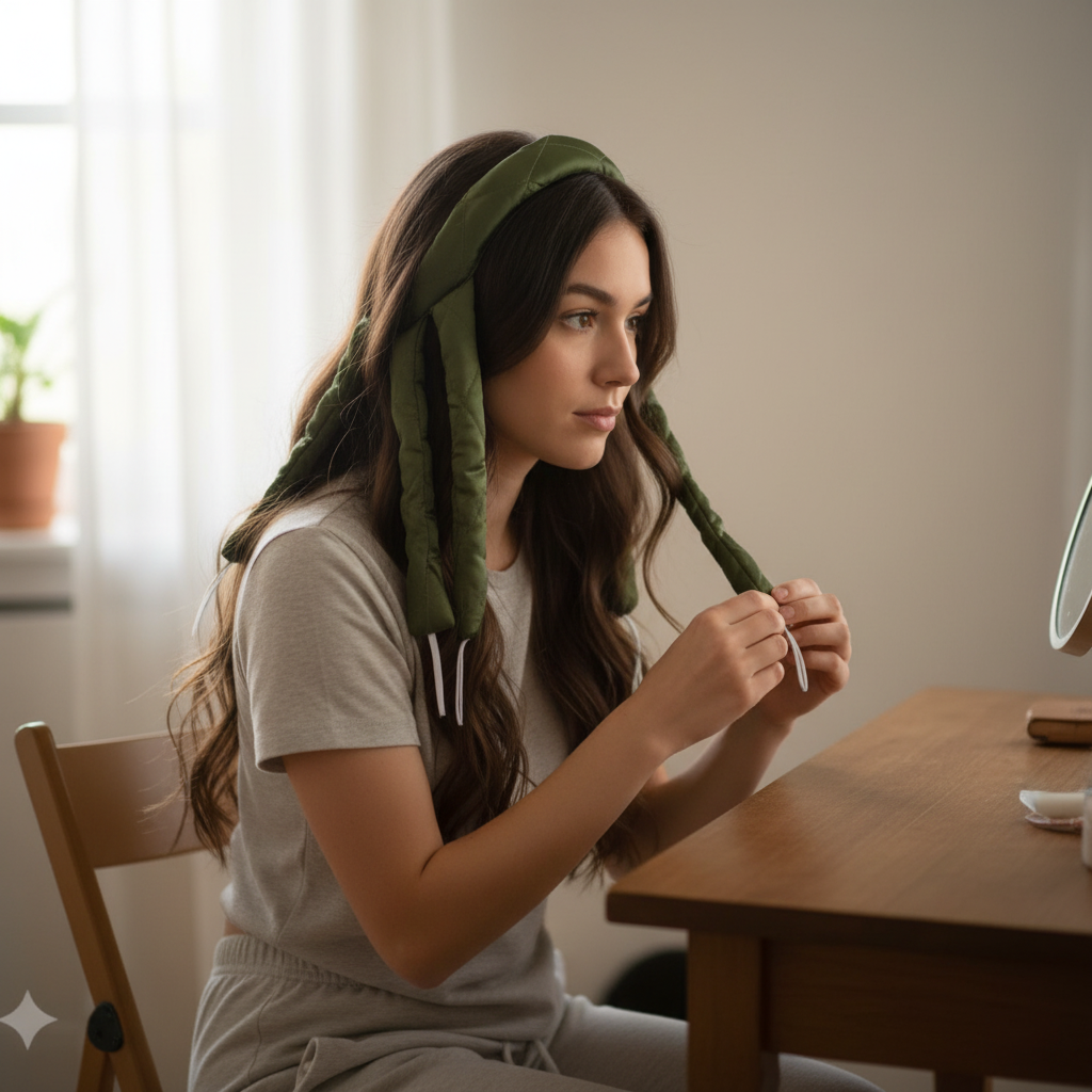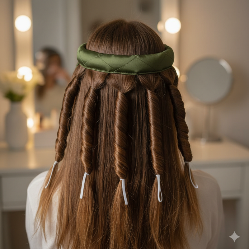 Designed with 8 flexible curling rods attached to a comfortable headband, this innovative curling system wraps gently around your hair—giving you beautiful waves while you relax, sleep, or go about your day.